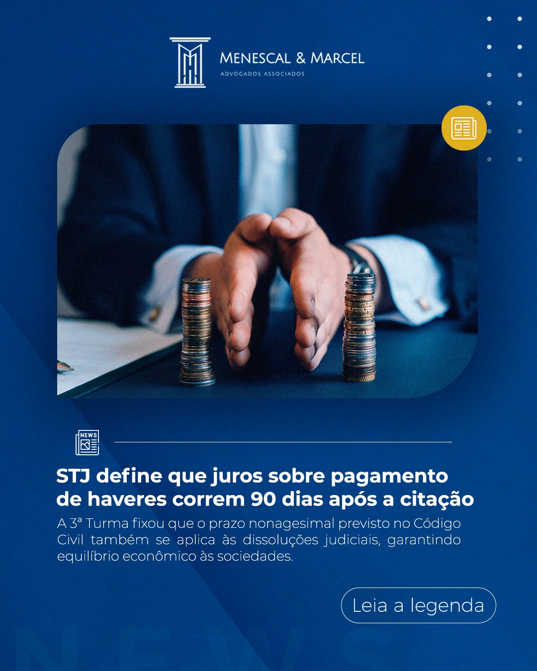 A 3ª Turma do STJ decidiu que os juros moratórios sobre os haveres de sócios retirantes começam a contar 90 dias após a citação, e