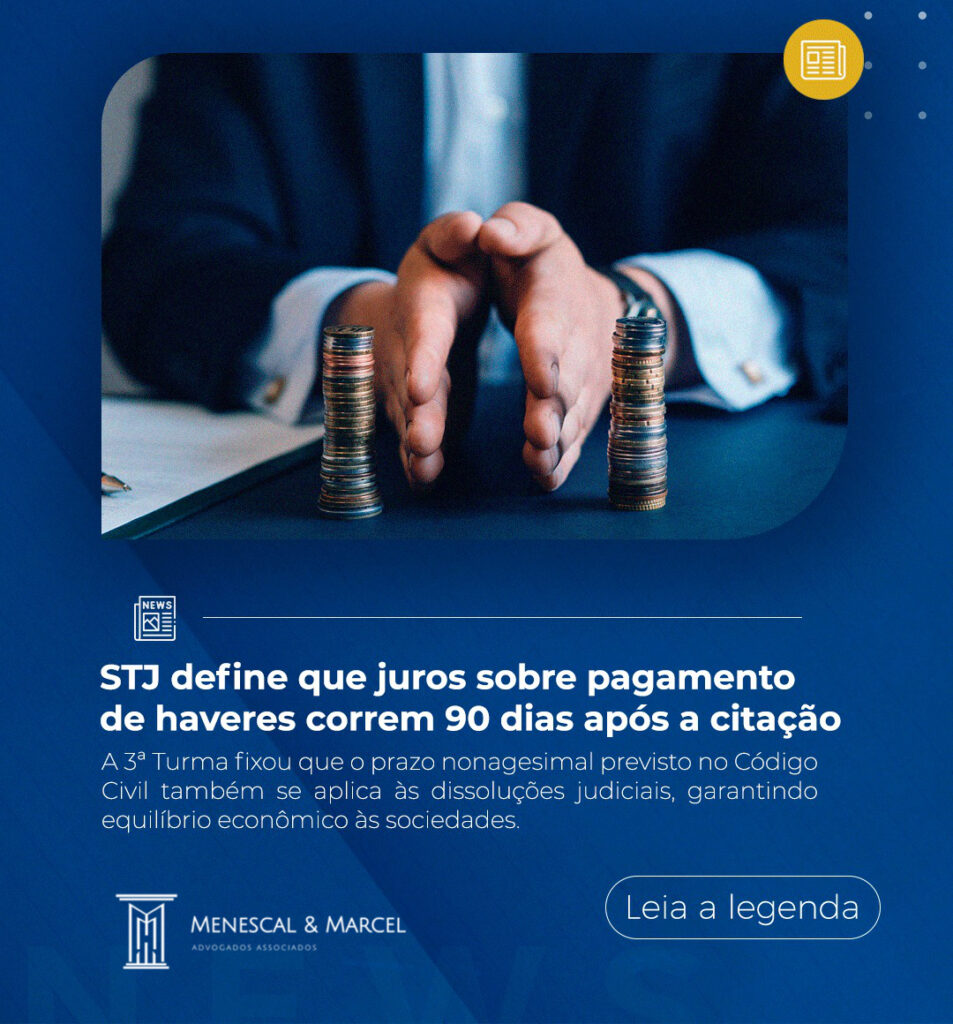 A 3ª Turma do STJ decidiu que os juros moratórios sobre os haveres de sócios retirantes começam a contar 90 dias após a citação, e não imediatamente a partir dela.